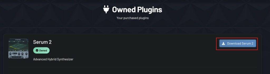 マイアカウントページに「Serum 2」の項目が追加されているので、「Download Serum 2」をクリックします。